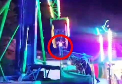 Woman caught in mid-air by man after fairground ride malfunctions