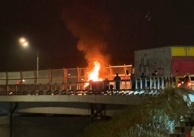The car burst into flames (Picture: Social media/east2west news)