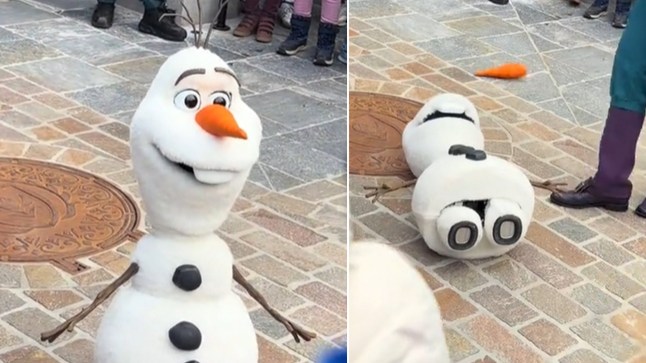 Children scream after Disney Olaf robot 'collapses' at Disneyland Paris